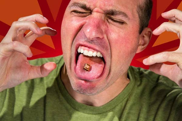 There’s only five grams of chocolate in this bar, but believe us when we say that’s much more than any sane person would want. In fact, we strongly recommend starting with the smallest piece you can break off and seeing how your taste buds hold up. You may find that just a nibble is enough to satisfy your need for a good burn.